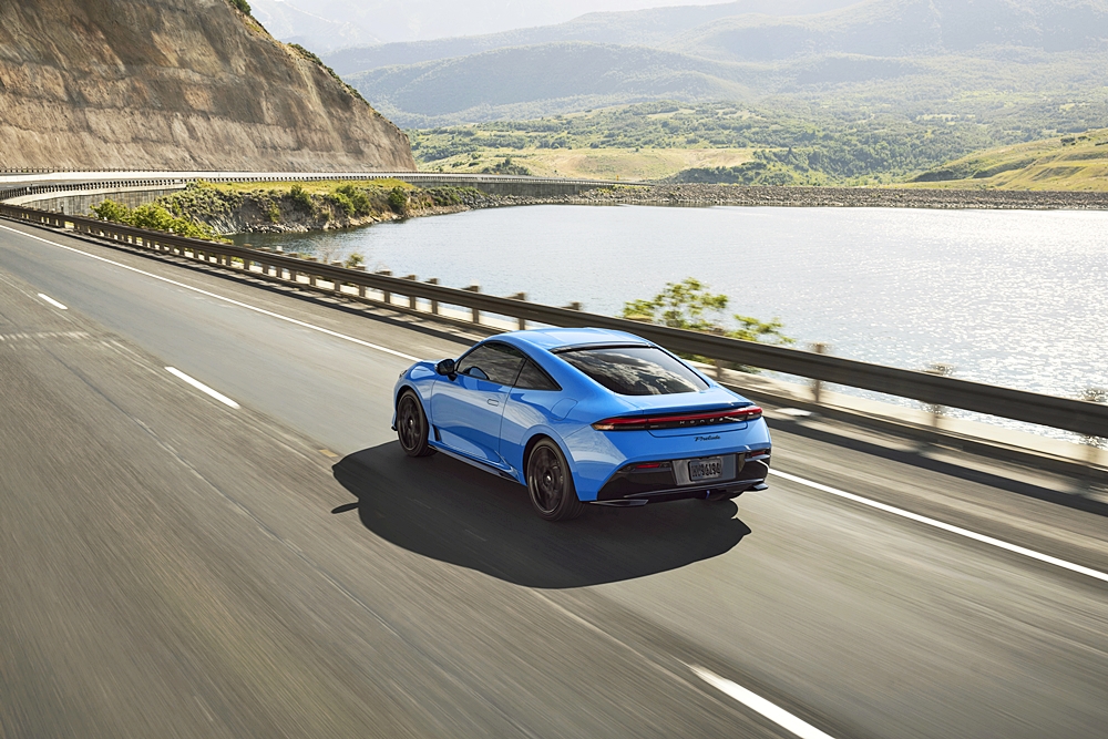 Profil coupé rendah dengan bumbung ‘double-bubble’, fender lebar dan bentuk yang kemas menyerlahkan kedudukan rendah dan lebar Prelude.”