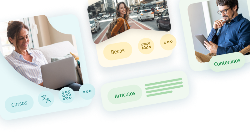 Cursos, contenidos y becas, sin coste para ti. Sin tener que ser cliente del banco.