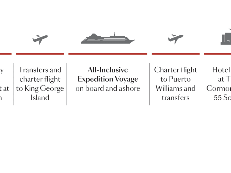 Here’s to finding the edge of your comfort zone at the edge of the Earth on a once-in-a-lifetime voyage to Antarctica. With private charters, 5-star accommodations, and a stay at the Southernmost Hotel on Earth℠, enjoy attentive hospitality that enhances your every moment. Skip The Drake Passage for a seamless flight to The Last Continent and begin exploring sooner. Embrace the silence and awe of wild beauty as Expedition Leaders take you down untrodden paths, deep into the Antarctic Wilderness. Uncover the wonders of Antarctica that most miss, following your curiosity to the edge of the earth, and embracing the joy of untouched beauty.
