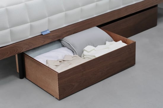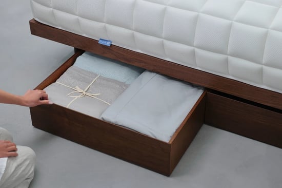 內附兩個巨大樺木合板抽屜,每個抽屜可收納眠被窩或三套以上雙人床包被套組。