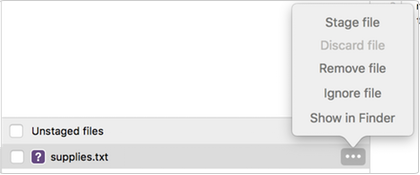 10. If you have a Git repository, make `supplyrequest.txt` ready to commit by selecting **Stage file** from the options menu.