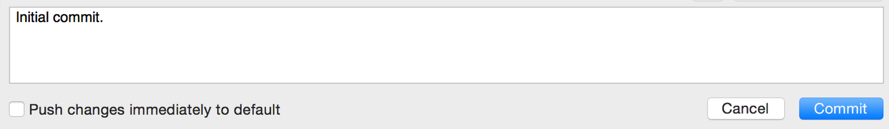 8. If you have a Git repository, you are done. If you have a Mercurial repository, you will notice that you need to commit your changes. Click the **Commit** button at the top. The commit message defaults to a description with "Merge." Keep this message and go ahead and click **Commit**.