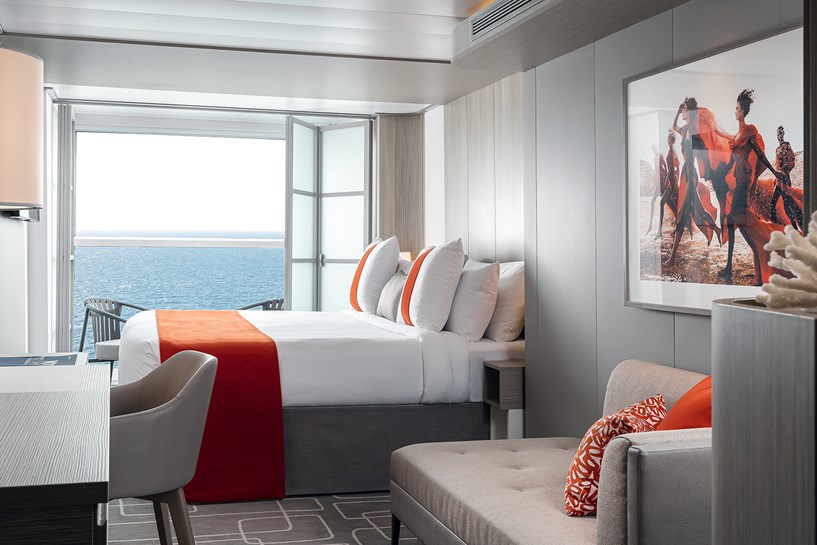 But perhaps my favorite space on the ship was my cabin, which was a 243 square-foot **[Edge Stateroom with Infinite Veranda](https://www.celebritycruises.com/things-to-do-onboard/staterooms/veranda-stateroom)**. The bedroom opened to an outdoor area with two chairs positioned toward the open sea. All that separated me from the outside was a retractable window that lowered to shoulder level with the touch of a button.