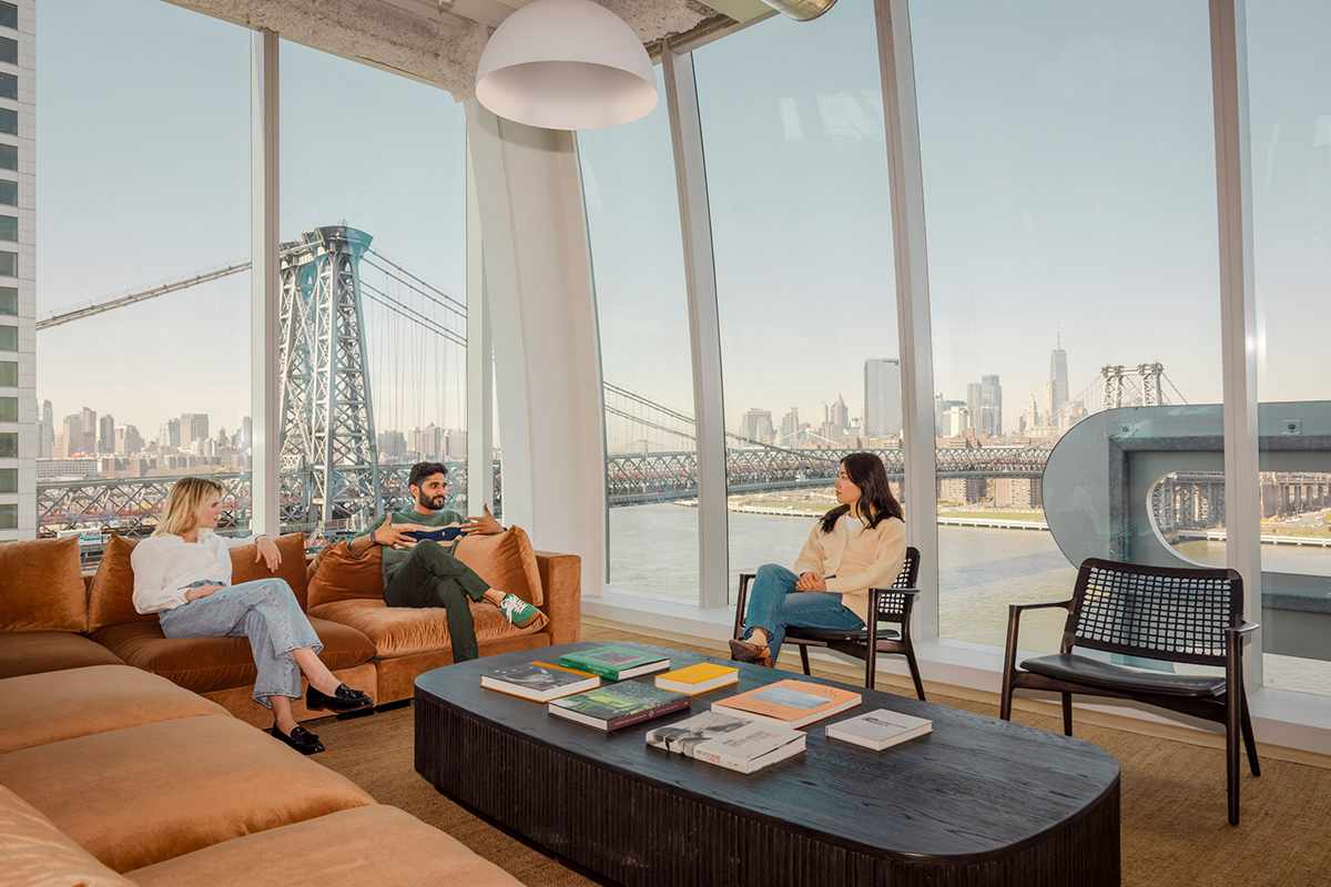offers 6,000-square-foot full and half-floor spaces with sweeping 360-degree views, floor-to-ceiling windows, glass-walled conference rooms, private kitchenettes and restrooms. Tenants at both buildings enjoy a suite of amenities lounges, conference and board rooms, state-of-the-art fitness centers, bike storage and more. Set within a dynamic cultural neighborhood, these offices are steps from art galleries, live music, boutiques, acclaimed restaurants, and Domino Park—with its iconic views of the Manhattan skyline. Williamsburg has become one of NYC’s most sought-after destinations for both work and life, and our offices put your team at the center of it all.