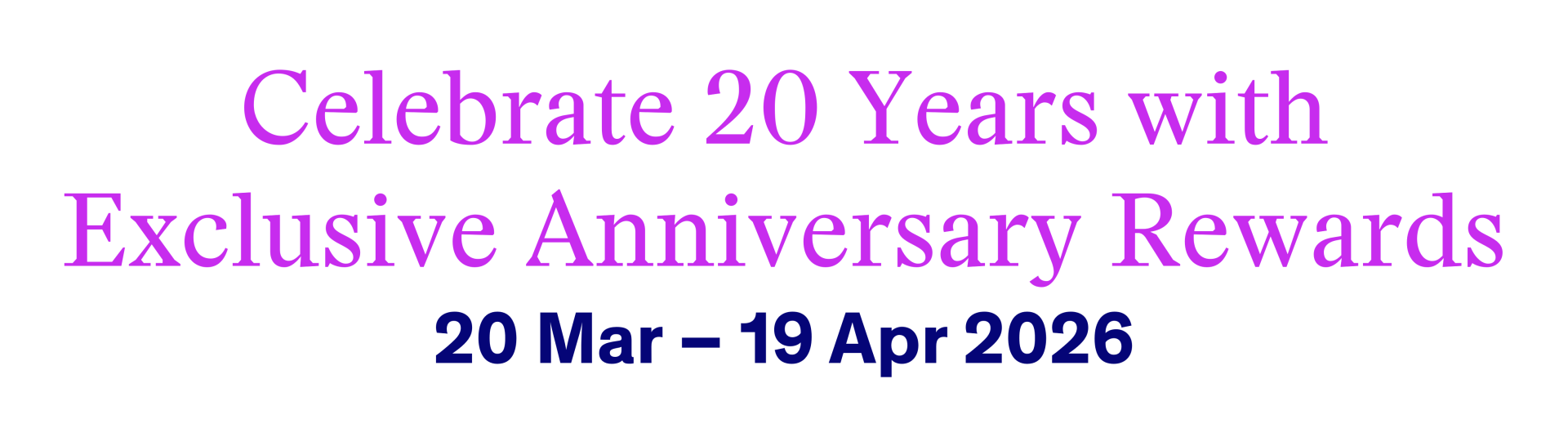 Celebrate 20 years of unforgettable moments with bigger rewards, surprises and joyful experiences made just for you.
