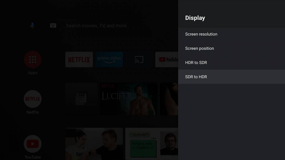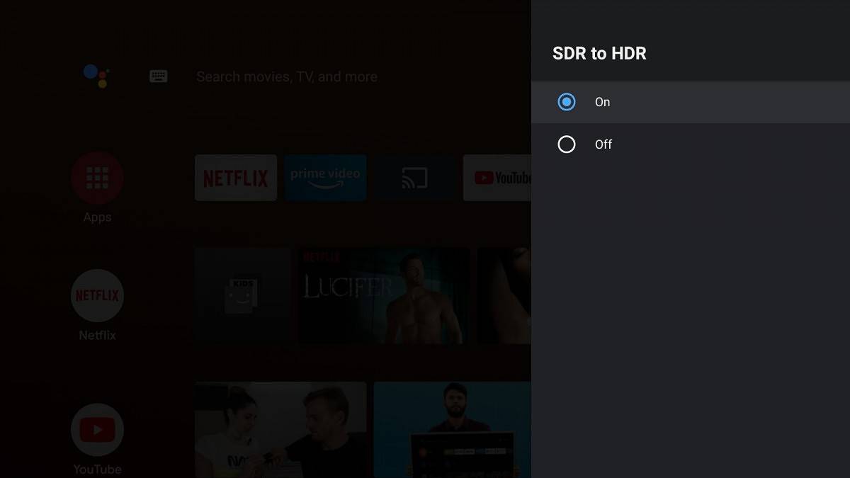 With the SDR to HDR option turned on, the dynamic range is widened throughout the UI; in simpler terms, the bright parts of the display become brighter and the light parts become lighter. Parts of the interface where this change is reflected include the Android TV launcher, the Play Store, and all the apps.Β It must be noted, however, that this HDR effect appears static, meaning the contrast doesn't change with each new frame and remains the same everywhere.