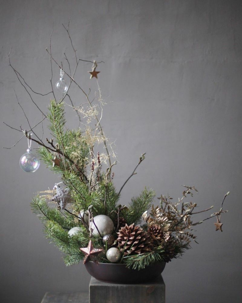Вот пошаговая инструкция, как сделать новогоднюю икебану своими руками, с фото.